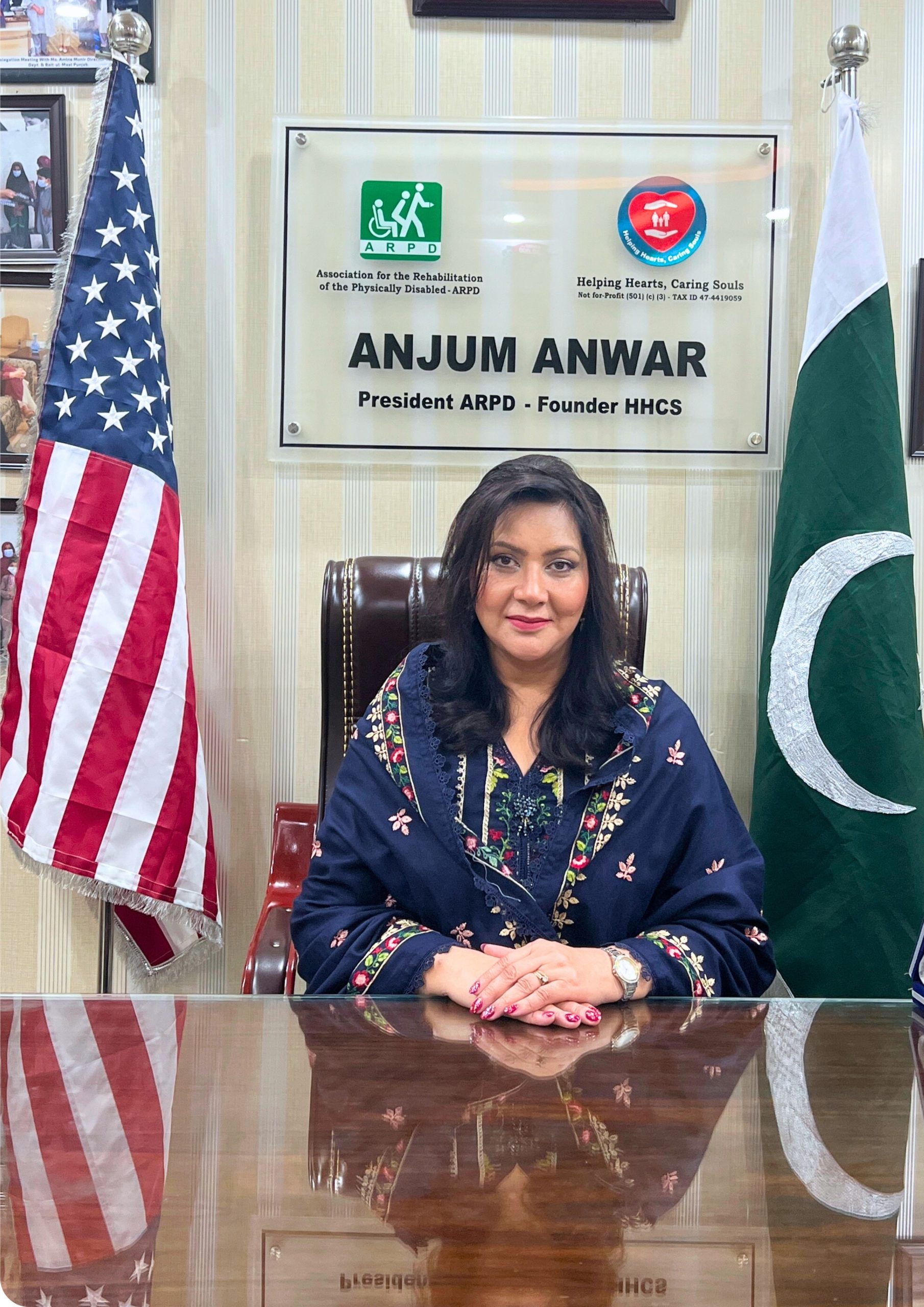 ARPD was originally founded in 1986 by Dr. Farhat Rahman, a pioneer in rehabilitative care in Pakistan. Following her passing in 2005, the organization experienced a period of decline. In 2015, philanthropist and humanitarian Ms. Anjum Anwar assumed leadership with a vision to restore and expand ARPD’s services. Having lived in the United States for over three decades, Ms. Anwar established Helping Hearts, Caring Souls (HHCS) — a U.S.-registered 501(c)(3) organization — to raise funds in support of ARPD’s work in Pakistan. Under her stewardship, ARPD was revitalized. Its infrastructure was rehabilitated, programs were expanded, and outreach was deepened across Pakistan. Today, ARPD stands as a beacon of hope — providing free, dignified care and services to thousands of individuals in need every year.